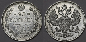 Цена монеты 20 копеек 1913 года СПБ/ВС (серебро) напрямую зависит от её состояния и редкости. Чем больше тираж, хуже сохранность и состояние, тем меньше её стоимость. Почитав о сохранности монет и самостоятельно проверив продажи на аукционах, чаще всего, Вы сами сможете примерно оценить, сколько она стоит на сегодня. Так же определить оригинал или подделка в Ваших руках, должна помочь наша статья. Если у Вас остались сомнения или Вы хотите получить профессиональную помощь в оценке и продаже, Вы всегда можете воспользоваться бесплатной оценкой онлайн от наших партнёров.