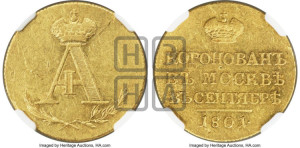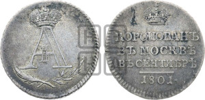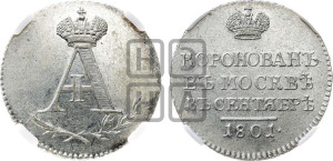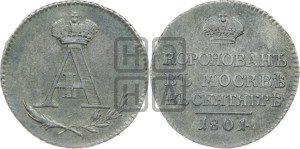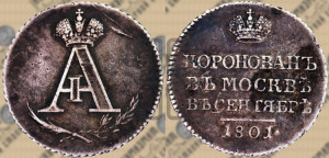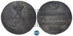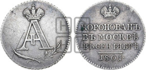Реверс: КОРОНОВАНЪ | ВЪ МОСКВѢ | ВЪ СЕНТЯБРѢ | 1801.