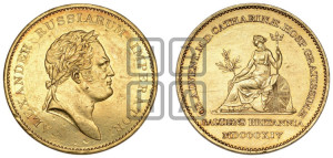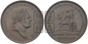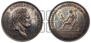 Описание аверса: Внутри окружной надписи бюст Александра I, обращенного вправо и увенчанного лавровым венком, в обрезе подпись гравера Т. WYON : S. (Т. Вайон исполнил)