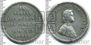 Реверс: ВЪ | ПАМЯТЬ | ДВУХЪ СОТЪ - ЛѢТ1Я | ДНЯ РОЖДЕНIЯ | - | 1672 - 1872 | 30 МАЯ .