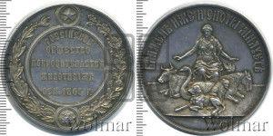 Реверс: РОССIЙСКОЕ | ОБЩЕСТВО | ПОКРОВИТЕЛЬСТВА | ЖИВОТНЫМЪ . | ОСН . 1865 Г .