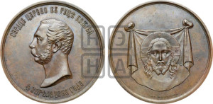 Описание реверса: Изображение нерукотворного образа Иисуса Христа на полотнище, в обрезе инициалы В • А • (В. Алексеев), под полотнищем СОЧ . МАКАРОВЪ (Сочинил Макаров)