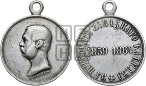 Главная / Каталог медалей Царской России / Александр II / За покорение западного Кавказа. 1864 / Медаль "За покорение западного Кавказа. 1864 - Гравер Н. Козин | Дьяков: 720.2