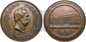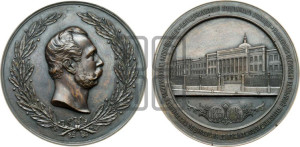 Реверс: П₼ТИДЕС₼ТИЛѢТIЕ МѢЩАНСКАГО УЧИЛИЩА УЧРЕЖДЕННАГО МОСКОВСКИМЪ КУПЕЧЕСКИМЪ ОБЩЕСТВОМЪ ВЪ ПАМ₼ТЬ СОВЕРШЕННОЛѢТI₼ ЦЕСАРЕВИЧА АЛЕКСАНДРА НИКОЛАЕВИЧА