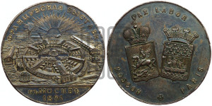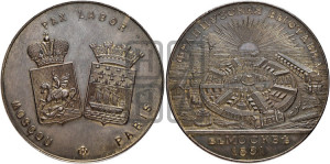 Описание аверса: В центре герб Москвы под Императорской короной и герб Парижа под королевской короной