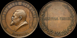 Описание аверса: Погрудный портрет В.Д. Спасовича, обращенного влево, в сюртуке, справа и слева от портрета шестилучевые звездочки, на обрезе плеча подпись F . WELONSKI. KOPI. STEINMAN . (Исполнил Велонский, копировал Штейнман)