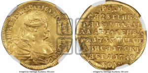 Реверс: РОДИ | СЯ • 28 • ГЕН | ВАРЯ • 1693 ВЛА | ДЕЛА • ЗЪ 19 ГЕНВ | АРЯ • 1730 ПРЕС | ТАВИСЯ • 17 ОК | ТЯБРЯ • 1740 | ГОДУ
