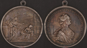 Аверс: Б • M • ЕКАТЕРИНА • II • IМПЕРАТ • И • САМОДЕРЖ • ВСЕРОСС •