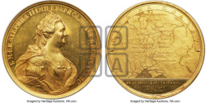 Аверс: Б • M • ЕКАТЕРИНА • II • IМПЕРАТ • ИСАМОДЕРЖ • ВСЕРОССIИС •