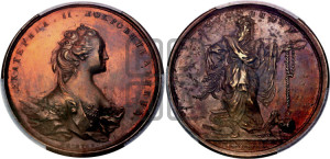 Аверс: ЕКАТЕРИНА . II . ПОКРОВИТЕЛЬНИЦА .