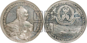 Реверс: ВЪ ПАМЯТЬ ЗАКЛЮЧЕННАГО СЪ ШВЕЦIЕЮ ВѢЧНАГО МИРА ВЪ АБОВѢ 1743 ГО : АВГ : 7 ДНЯ