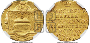 Аверс: ЕЛИСАВЕТЪ | ПЕРВАЯ | IМПЕР • IСАМОД | ВСЕРОССИСК • | СКОНЧАЛ • | 25 ДЕКАБ • | 1761 •