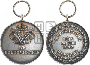 Реверс: ЦАРСКОЕСЕЛО | 1818 | 20 . IЮНЯ 1843 | БЕРЛИНЪ