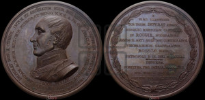 Реверс: VIRO. ILLUSTRISS. | SUB. TRIUM. IMPERAT. AUSPIC. | EGREGIO. MEDICINÆ. CASTRENS. | IN. ROSSIA. MODERATORI. |ANNOS. L. ARTI. SALUTARI. CONSECRATOS. | VENERABUNDI. GRATULANTUR. | ROSSIÆ. MEDICI. | PETROPOLI. D. IX. DEC. MDCCCXL. | DECORUM. | FORTITER. PRO.