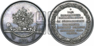 Аверс: ПОДЪ | ВЫСОЧАИШИМЪ | ПОКРОВИТЕЛЬСТВОМЪ | ЕЯ ИМПЕРАТОРСКАГО | ВЕЛИЧЕСТВА | РОССИIИСКОЕ ОБЩЕСТВО | ЛЮБИТЕЛЕЙ САДО = | ВОДСТВА .