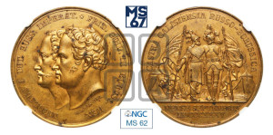 Перевод аверса: Николай I, император всероссийский, Фридрих Вильгельм III, король Прусский