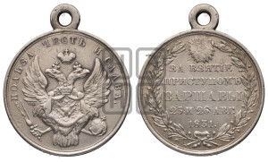 Реверс: ЗА ВЗЯТİЕ | ПРИСТУПОМЪ | ВАРШАВЫ | 25 И 26 АВГ . | 1831 .