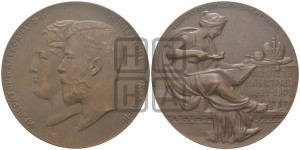 Описание аверса: Влево обращенные один за другим бюсты Императоров Николая II и Александра I в лавровом венке