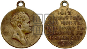 Реверс: 1812 | СЛАВНЫЙ ГОДЪ | СЕЙ МИНУЛЪ, | НО НЕ ПРОЙДУТЪ | СОДѢЯННЫЕ ВЪ | НЕМЪ ПОДВИГИ | - | 1912