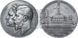 Описание аверса: Влево обращенные один за другим бюсты Императоров Николая II и Петра I в лавровой венке