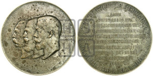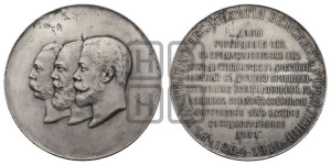 Описание аверса: Влево обращенные один за другим бюсты Императоров Николая II, Александра III и Александра II
