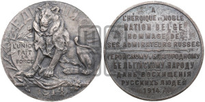 Реверс: A | L’HEROIQUE ЕТ NOBLE | NATION BELGE | HOMMAGE DE | SES ADMIRATEURS RUSSES | - | ГЕРОЙСКОМУ | И | БЛАГОРОДНОМУ | БЕЛБГIЙСКОМУ НАРОДУ | ДАНЬ ВОСХИЩЕНIЯ | РУССКИХЪ ЛЮДЕЙ | 1914 Г .