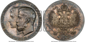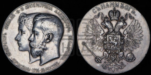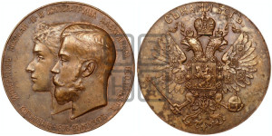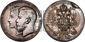Аверс: ИМПЕРАТОРЪ НИКОЛАЙ • II • И ИМПЕРАТРИЦА АЛЕКСАНДРА ѲЕОДОРОВНА . • КОРОНОВАНЫ • 1896 • ВЪ МОСКВѢ •