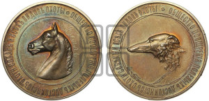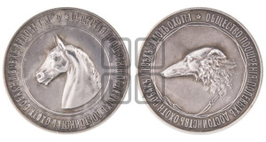 Аверс: ОБЩЕСТВО ПООЩРЕНIЯ ПОЛЕВЫХЪ ДОСТОИНСТВЪ ОХОТН . СОБАКЪ И ВСѢХЪ ВИДОВЪ ОХОТЫ