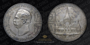 Описание реверса: Вид открытого в Московском Кремле памятника Александру II. Справа над линией обреза подпись ГРИЛИХ . СЫНЪ (Грилихес-сын)