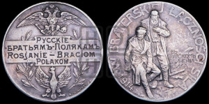 Главная / Каталог медалей Царской России / Николай II / Русские братьям-полякам. 1914 / Медаль "Русские братьям-полякам. 1914 - Мастерская А. Жакара. Гравер Г. Малышев | Дьяков: 1582.1