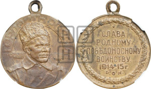 Реверс: СЛАВА | РОДНОМУ | ПОБѢДОНОСНОМУ | ВОИНСТВУ . | 1914-15 Г | Р . О . Н .