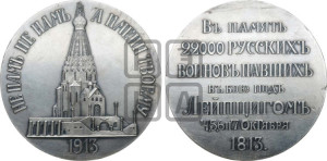 Реверс: ВЪ ПАМЯТЬ | 22000 РУССКИХЪ | ВОИНОВЪ ПАВШИХЪ| ВЪ БОЮ ПОДЪ| ЛЕЙППИГОМЪ |4. 5. 6. И 7 ОКТЯБРЯ | 1813 .