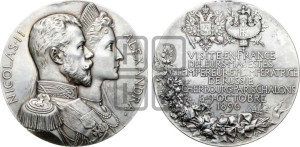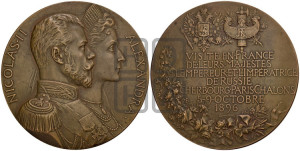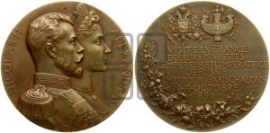 Реверс: VISITE • EN • FRANCE | DE • LEURS • MAJESTÉS | L ‘ EMPEREUR • ЕТ • L ‘ IMPÉRATRICE | DE • RUSSIE | CHERBOURG • PARIS • CHALONS | 5-9 • OCTOBRE | 1896