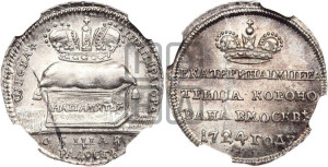 Аверс: ЕКАТЕРИНА IМПЕРА | ТРИЦА • КОРОНО | ВАНА • ВМОСКВѢ | 1724 ГОДУ