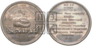 Реверс: M . О . Р . F . | Principi | PETRO • I • | Nomine • et factis stupendis | MAGNO | Russorum Imperatori | PATRIQUE | Post vicennales triuphos | SEPTENTRIONIS PACATORI | hoc ex • auro vernaculo | Numisma | D . D