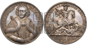 Аверс: PETRVS ALEXEIEWICZ D : G • VNIVERSAE MAIORIS MINORIS • | ET ALBAE RVSSIAE CZAR ET AVTOCRATOR •