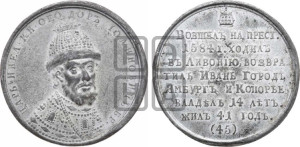 Реверс: ВОЗШЕЛЪ НА ПРЕСТ. | 1584 Г. ХОДИЛЪ | ВЪ ЛИВОНÏЮ, ВОЗВРА- | ТИЛЪ ИВАНЬ ГОРОДЪ | ЯМБУРГЪ И КОПОРЬЕ | ВЛАДѢЛЪ 14 ЛѢТЪ. | ЖИЛЪ 41 ГОДЪ . | (45)