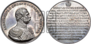 Реверс: ВОСХОДИТЬ НА ПРЕСТОЛЪ 19 ФЕВРАЛЯ | 1855 Г. ЗАВЕРШАЕТЪ ПОКОРЕНIЕ КАВКАЗА. | ОСВОБОЖДАЕТЪ КРЕСТЬЯНЪ. ИЗДАЕТЪ СУДЕБ- | НЫЕ УСТАВЫ. ДАРУЕТЪ ЗЕМСКОЕ И ГОРОДСКОЕ | ПОЛОЖЕНIЯ. ОТМѢНЯЕТЪ ТѢЛЕСНЫЯ НАКАЗАНIЯ. | УЧРЕЖДАЕТЪ ВСЕСОСЛОВНУЮ ВОИНСКУЮ | ПОВИННОСТЬ. РАСПРОС