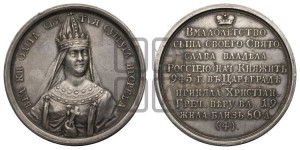 Описание аверса: Поясное изображение Великой княгини слегка вправо в короне и богатом одеянии, с четырёхконечным крестом в левой руке