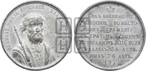 Реверс: СѢЛЪ НАКНЯЖЕНÏЕ | КÏЕВСКОЕ ПОЖЕСТО- | КОМЪ СРАЖЕНÏИ | СЪ БРАТОМЪ СВОИМЪ | МСТИСЛАВОМЪ 1016 ГОДА | ВЛАДѢЛЪ 38 ЛѢТЪ. | ЖИЛЪ 76 ЛѢТЪ. | (9)