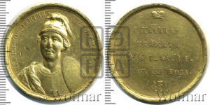 Описание аверса: Погрудное изображение Великого князя слегка влево, в шлеме и латах, с мантией на правом плече и со щитом около левого